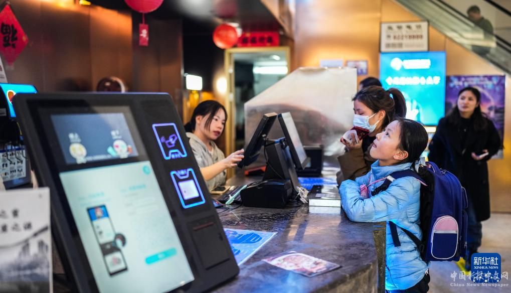2月18日,小朋友在貴陽市云巖區(qū)益田國際影城選購電影票。