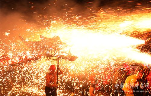 舞龍噓花之夜,人稱為勇敢者的狂歡之夜。舞者赤身裸體,不怕火花燙傷;噓者也是勇敢者,不怕追逐的勞累和艱險;觀者也是勇敢者,不怕花筒四射,緊追圍觀。無論男女老幼都可舞、可噓、可觀,驚險火爆的場面,由于舞龍噓花燃起眾人內(nèi)心的情感世界之火,活動往往通宵達旦。