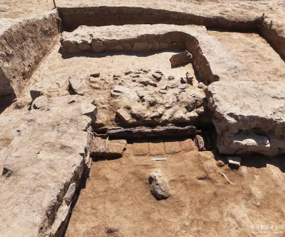 此外,考古隊員在最大的房址發(fā)現方形磚砌祭臺。專家表示,磚砌祭臺屬熱水墓群中的首次發(fā)現,祭臺中發(fā)現大量磚塊。通過陵園及祭祀建筑的規(guī)模、數量等線索推測,這個墓葬的規(guī)格、墓主人的身份等級要高于2018血渭一號墓。