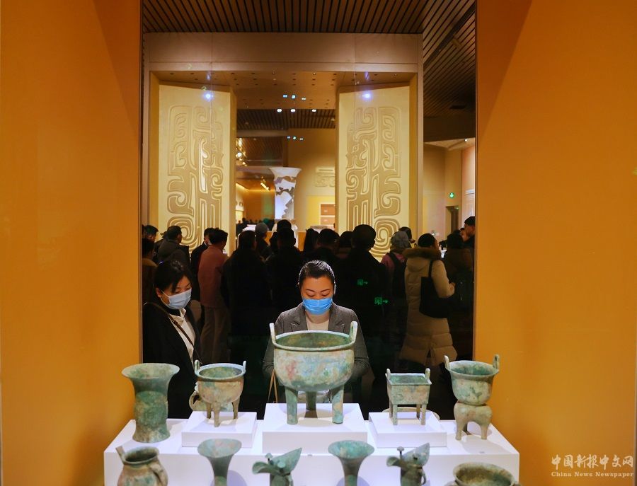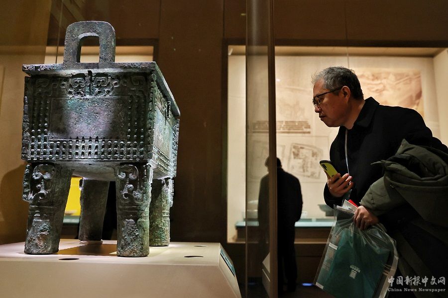 2月26日,觀眾參觀“司母辛”銅鼎。中國日報記者 姜東 攝