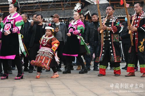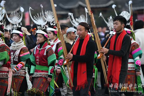 “甘囊香”是苗語音譯,意為“河流的下游,神仙匯聚的地方”。“甘囊香”蘆笙節(jié)延續(xù)至今已有四百多年歷史,是貴州省級非物質文化遺產(chǎn)。(楊仁海)