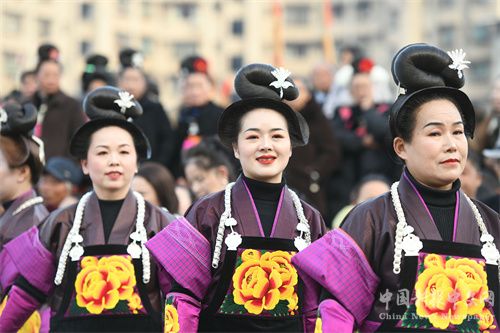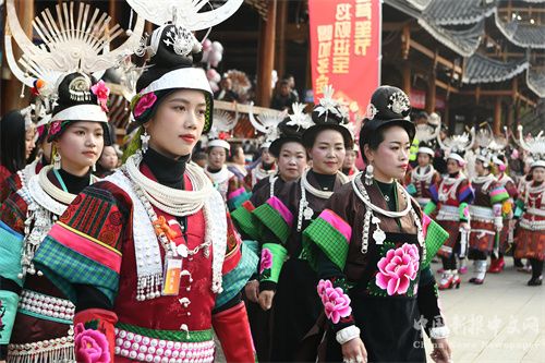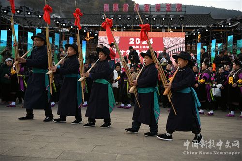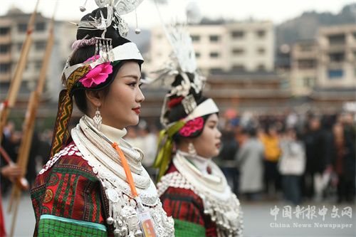 2024年3月2日,在貴州省凱里市舟溪鎮(zhèn),苗族群眾在參加“甘囊香”蘆笙節(jié)活動。(楊仁海 攝)