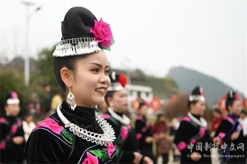 3月8日,貴州省凱里市下司鎮(zhèn)馬場(chǎng)村,婦女們?cè)诮恿惐荣悺#钊屎?攝)
