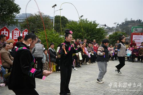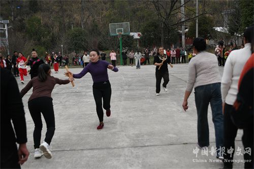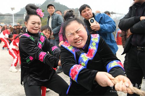 3月8日,貴州省凱里市下司鎮(zhèn)馬場(chǎng)村,婦女們?cè)谔K比賽。(楊仁海 攝)