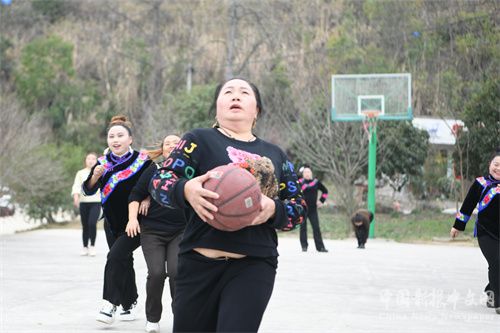 3月8日,貴州省凱里市下司鎮(zhèn)馬場(chǎng)村,婦女們?cè)谶M(jìn)行姑媽籃球比賽。(楊仁海 攝)