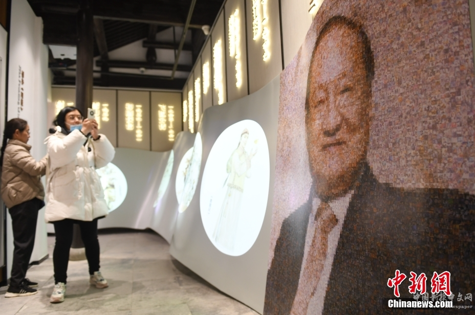 3月10日,由大量影視劇照組成的金庸像吸引參觀者。當(dāng)日是武俠小說(shuō)泰斗金庸誕辰百年紀(jì)念日,其浙江嘉興海寧故居在提升改造后煥新亮相。中新社記者 王剛 攝