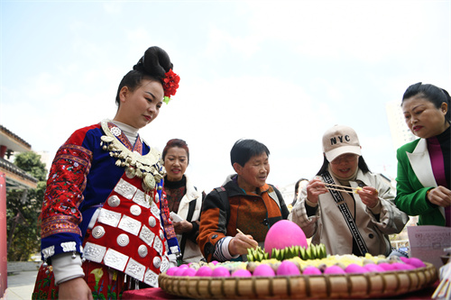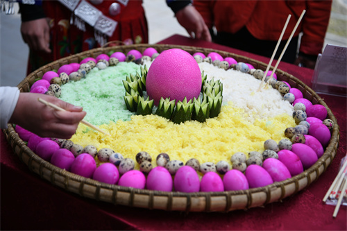 3月11日(農(nóng)歷二月初二),凱里市一家餐飲企業(yè)在國家3A級旅游景區(qū)凱里苗侗風情園舉行二月二龍?zhí)ь^蚩尤部落首屆蛋王節(jié)。