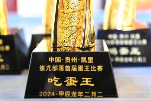 3月11日,貴州省凱里市凱里侗風情園,蚩尤部落首屆蛋王節(jié)獎杯。(楊仁海 攝)