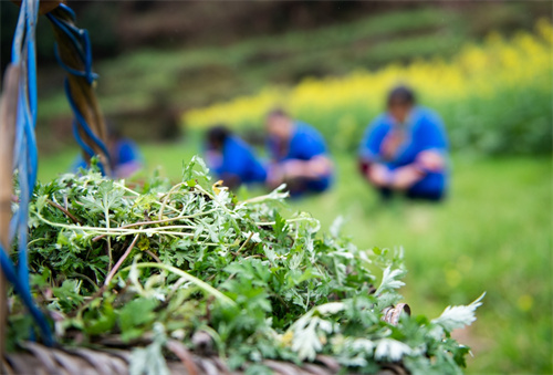 天柱縣注溪鄉(xiāng)村民打蒿菜做社飯