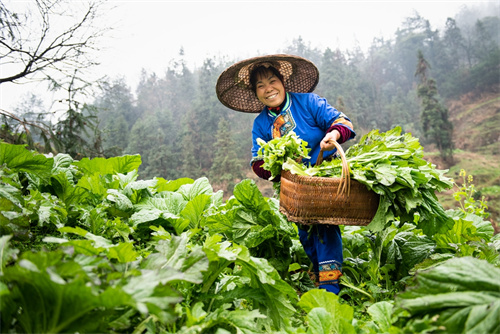 天柱縣注溪鄉(xiāng)村民打青菜準備做社飯。