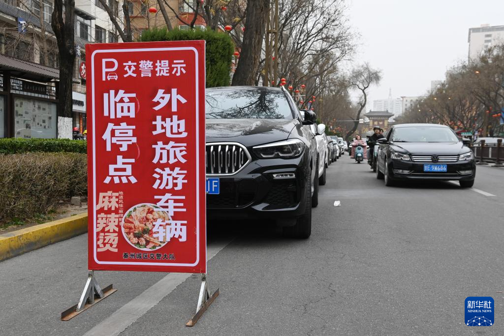 這是3月16日在天水市秦州區(qū)拍攝的道路邊新設(shè)置的“外地旅游車輛臨停點(diǎn)”。