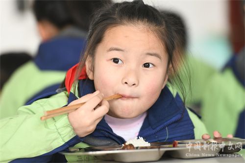 現(xiàn)場看到,座無虛席,一個個學生津津有味地吃著午餐,臉上洋溢著幸福的笑容。