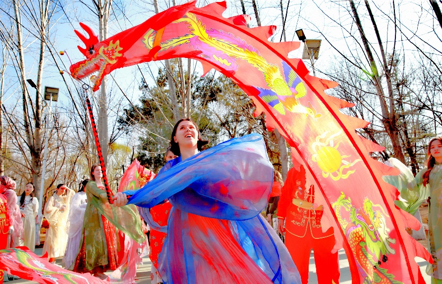 活動(dòng)中,留學(xué)生們身著漢服,身姿綽約,曼妙翩躚。來(lái)自埃及的秦萊同學(xué)大聲贊嘆:“漢服實(shí)在太美了!”中西合璧的另一番美吸引了大量游客紛紛按下快門(mén),和留學(xué)生們合影留念。