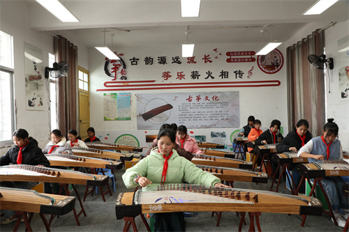 3月26日,在湖南省保靖縣毛溝小學(xué),教師在引導(dǎo)學(xué)生練習(xí)彈奏古箏。近年來,該校古箏、二胡、笛子等傳統(tǒng)民族樂器演奏融入學(xué)校課堂教學(xué)和課后服務(wù),引導(dǎo)學(xué)生學(xué)習(xí)民族樂器演奏技巧,激發(fā)學(xué)生熱愛民族樂器、傳承民族文化的熱情。(俞采華 彭賢夢)