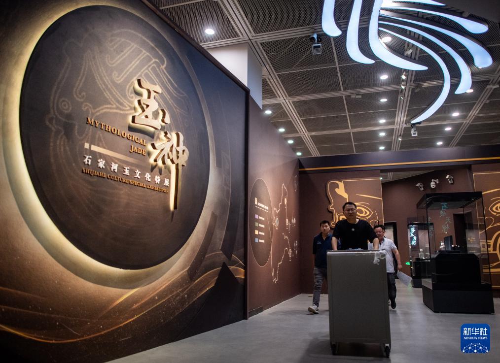 3月30日,工作人員經(jīng)過“玉神——石家河玉文化特展”展廳。