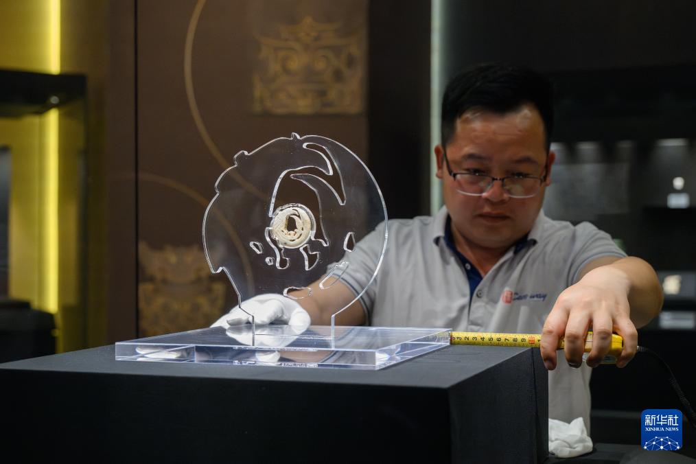 3月30日,工作人員在固定展品玉團(tuán)鳳。