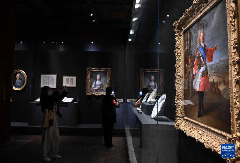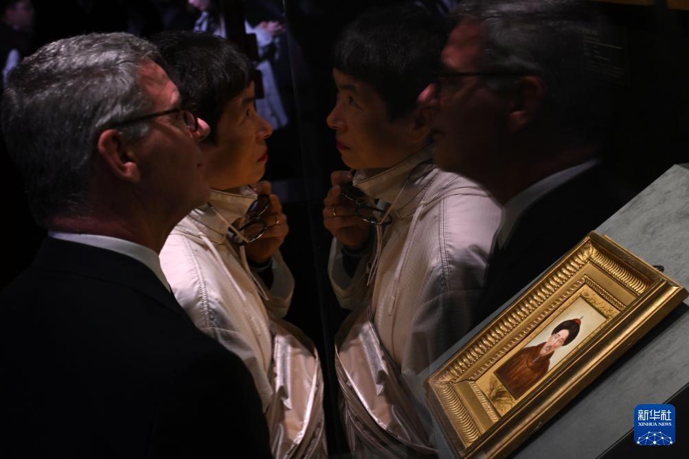 4月1日,觀(guān)眾參觀(guān)凡爾賽宮收藏的乾隆皇帝像瓷版畫(huà)。