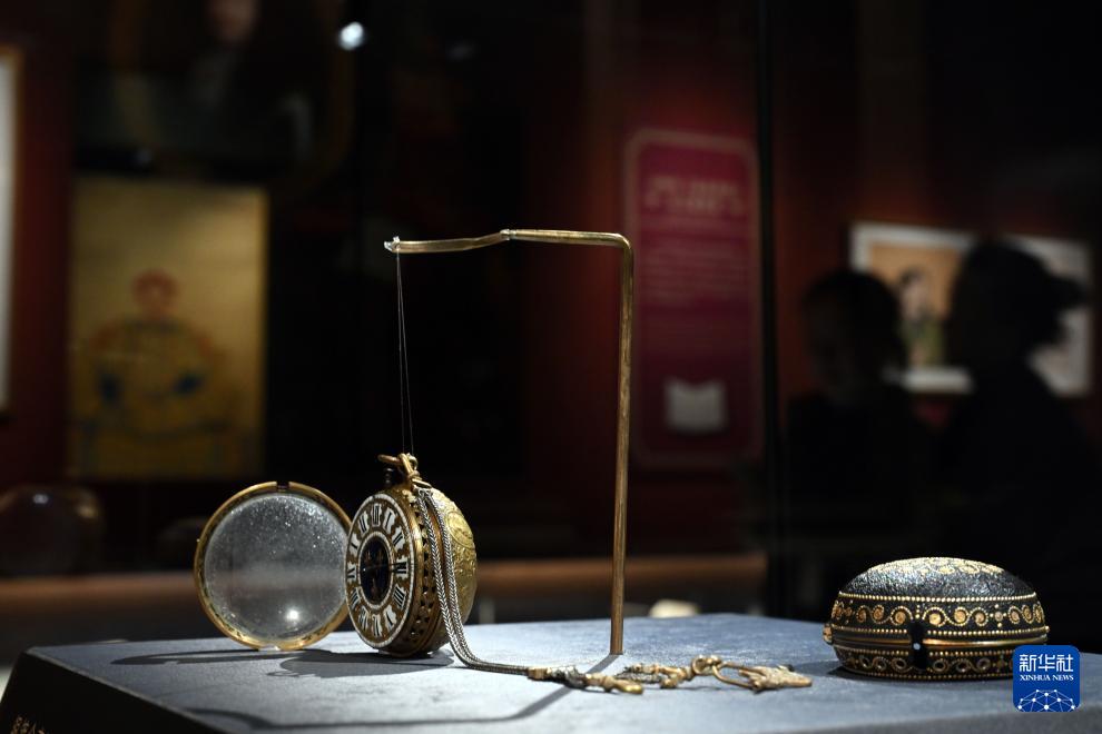 這是展出的故宮博物院藏銅鍍金殼開(kāi)光人物像懷表(4月1日攝)。