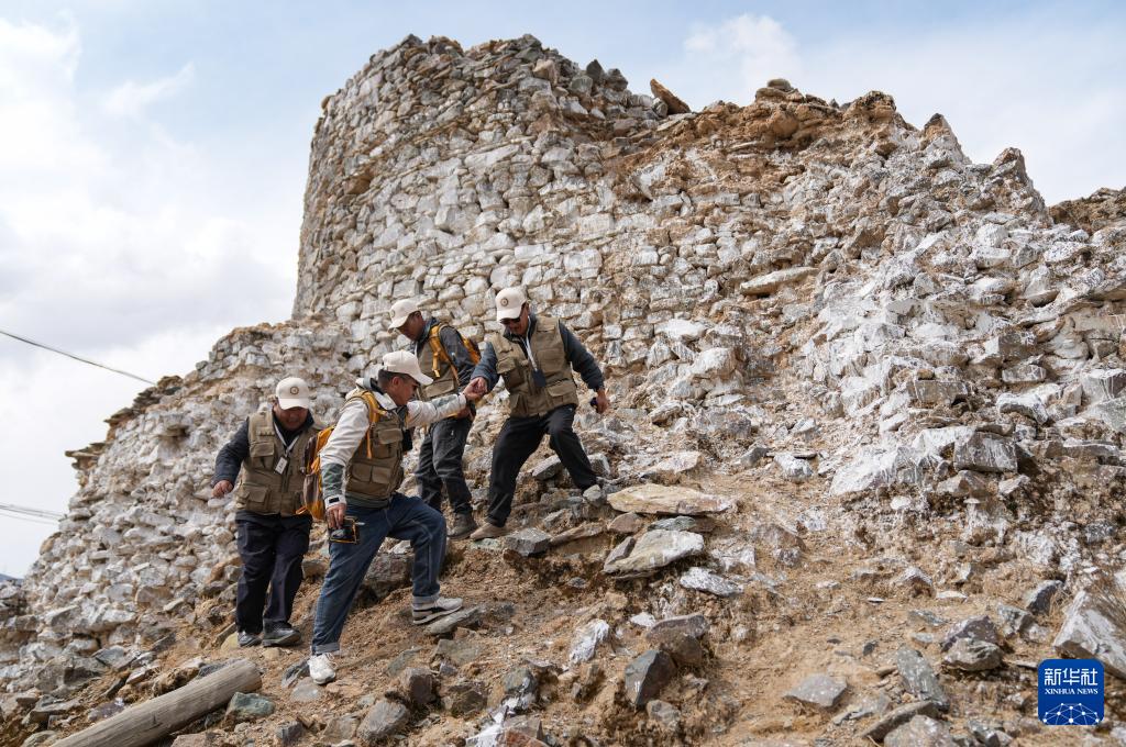 4月11日,普查人員在曲果崗塔群遺址現(xiàn)場(chǎng)開展數(shù)據(jù)采集。新華社記者 晉美多吉 攝