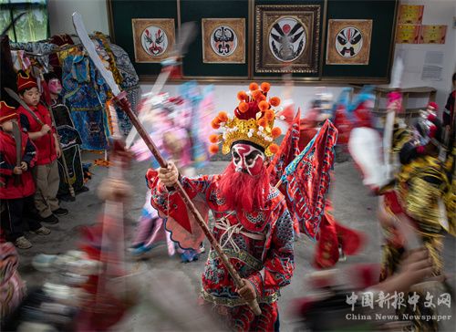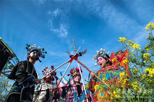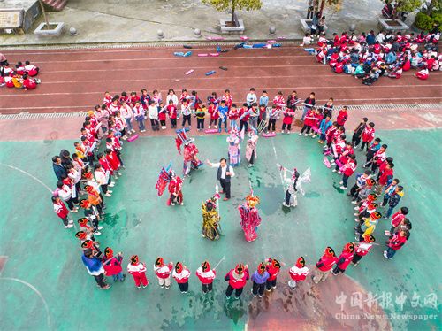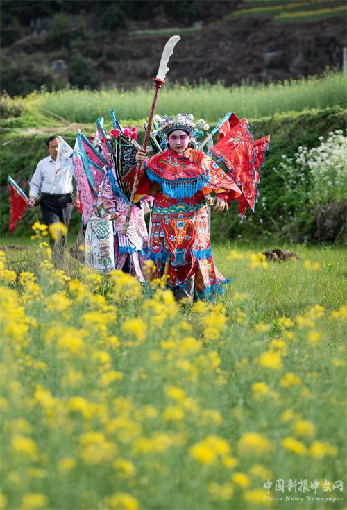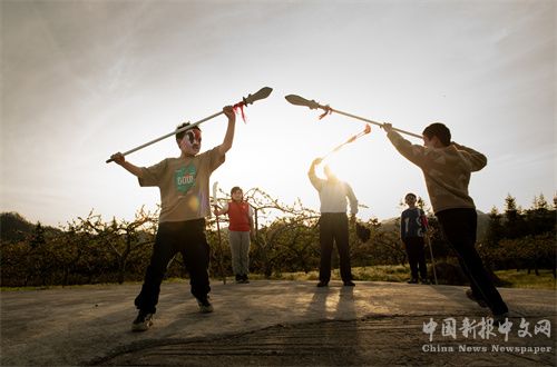 “好!好!精彩!”貴州省天柱縣渡馬鎮(zhèn)巖門村桃花李花盛開時節(jié),渡馬小學(xué)少年宮侗戲班的孩子,在指導(dǎo)老師的帶領(lǐng)下,在桃李園里排戲。孩子們嫻熟的打斗動作,婉轉(zhuǎn)的唱腔,贏得了看客陣陣叫好。