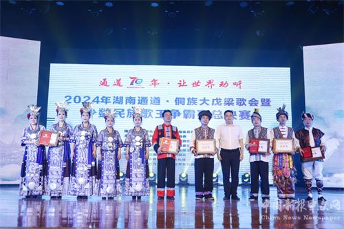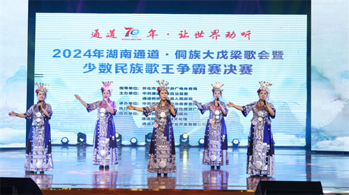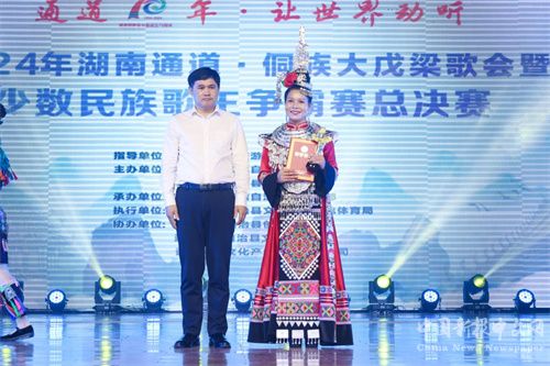 4月24日,2024年湖南通道•侗族大戊梁歌會暨少數(shù)民族歌王爭霸賽總決賽在湖南省通道侗族自治縣民族劇院落下帷幕,13名選手經(jīng)過現(xiàn)場角逐,來自通道縣的歌手楊團花技壓群雄,問鼎總決賽“少數(shù)民族歌王”,選手鄧施齊獲得一等獎、選手王亞麗、蘇成獲二等獎,選手楊木春、吳火霞、耿成托獲三等獎。