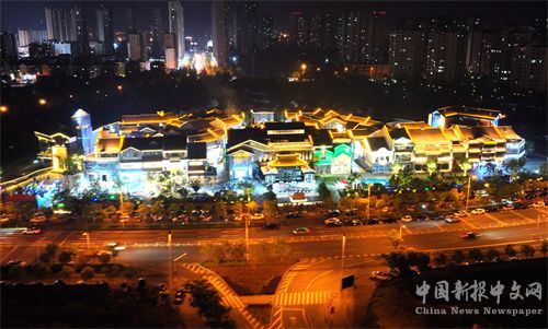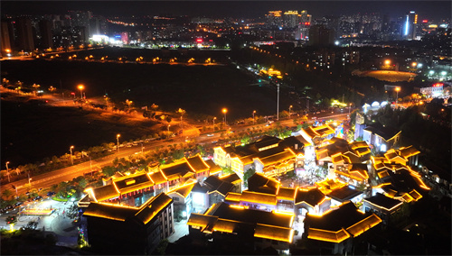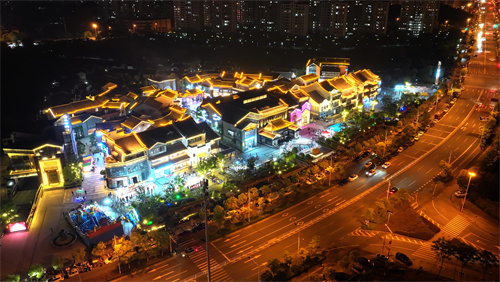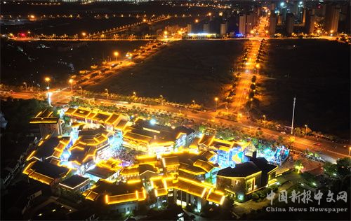2024年5月1日晚上,安徽省合肥市廬江縣特色街區(qū)水西門在節(jié)日燈光的掩映下五光十色,流光溢彩,華美氤氳,吸引了許多市民和游客到此打卡,感受徽州水墨與書香人文交織的文化氛圍。(巢志斌 攝)