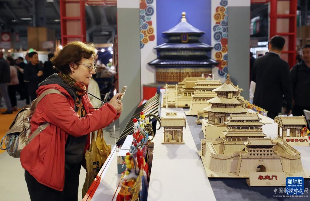 5月1日,在法國(guó)巴黎國(guó)際博覽會(huì)上,人們?cè)?ldquo;遇鑒中國(guó)”中華文化主題展上參觀。