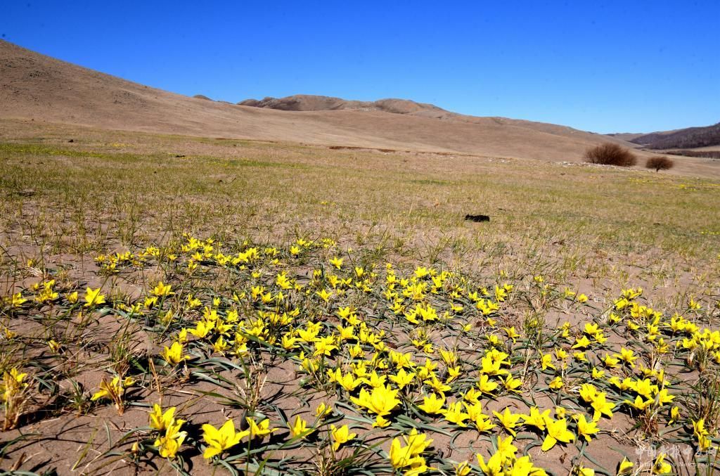 自重新發(fā)現(xiàn)蒙古郁金香后,高格斯臺(tái)罕烏拉保護(hù)區(qū)采取了嚴(yán)格保護(hù)措施,加上去年冬季降雪量大,蒙古郁金香的生長(zhǎng)環(huán)境特別濕潤(rùn),越冬的芽苞沒(méi)有受到凍害,因此今年的花朵開(kāi)得很鮮艷,集群分布數(shù)片,總面積大約5畝。