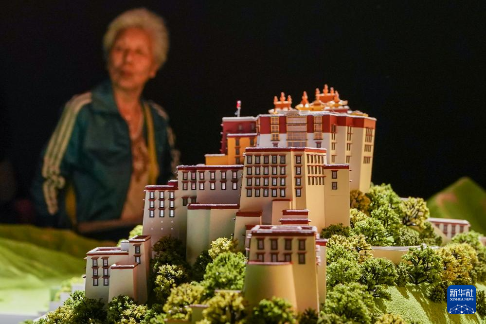 5月11日,觀眾在展出現(xiàn)場參觀拍攝布達拉宮模型。