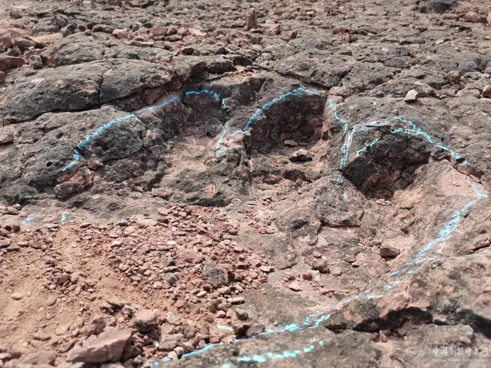 現(xiàn)場發(fā)現(xiàn)的恐龍足跡化石。(祿豐市融媒體中心供圖)
