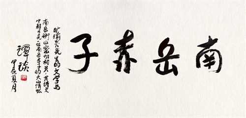 6月14日,中國作家協(xié)會原副主席、湖南省文聯(lián)名譽主席譚談,聽聞衡陽曠瑜炎老先生以82歲高齡加入中國作協(xié),特親筆題匾“南岳赤子”以贈,款署:“曠瑜炎先生的文學(xué)與南岳衡山密切相關(guān),其詩文中都可見一位南岳赤子的大山情懷。”