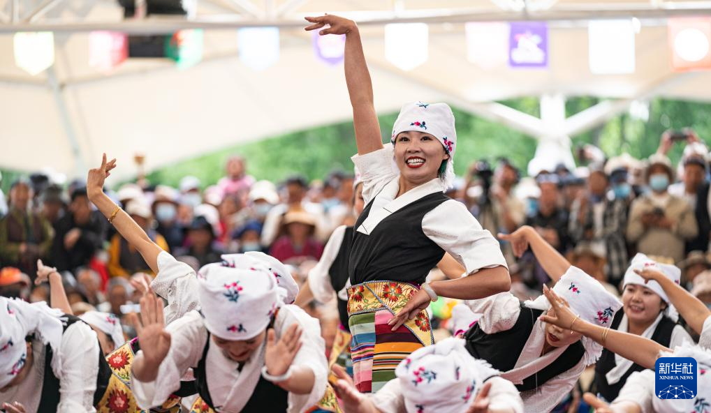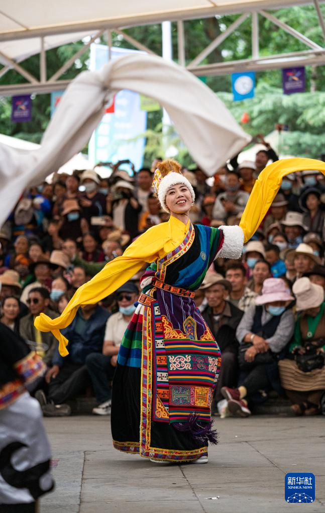 6月14日,參賽者在第二屆拉薩鍋莊舞大賽現(xiàn)場表演。