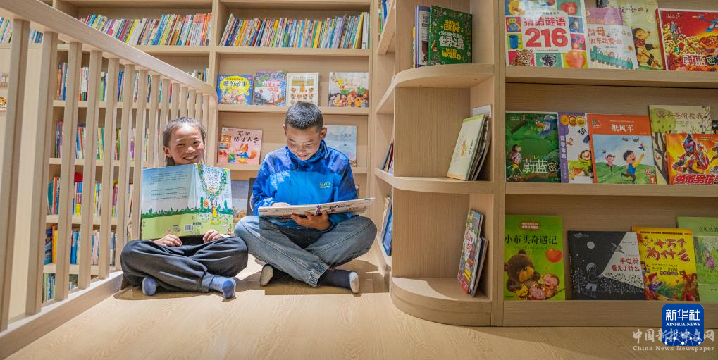 孩子們在“溫暖嘉·色尼城市書房”內(nèi)閱讀兒童繪本(6月17日攝)。