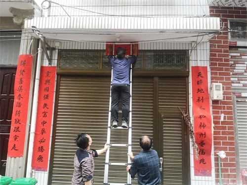 洞口縣高沙鎮(zhèn)文聯(lián)會(huì)員在居民家大門口貼對(duì)聯(lián)。劉大華(攝)