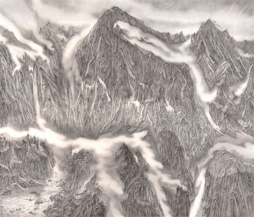 在此之前,賀海鋒曾在北京、天津、深圳、重慶、昆明、西安、福州等大城市舉辦個展,并在國內(nèi)外參加數(shù)十個聯(lián)展群展。代表作是長卷式主題性巨作《珠江源》,另有《重泉疊嶂》《迷城之二》《春望》等先后參加全國、全省大展并獲獎,作品廣被藝術(shù)機(jī)構(gòu)和藏家庋藏。2024年2月,嶺南美術(shù)出版社出版《守望——賀海鋒山水畫作品集》。