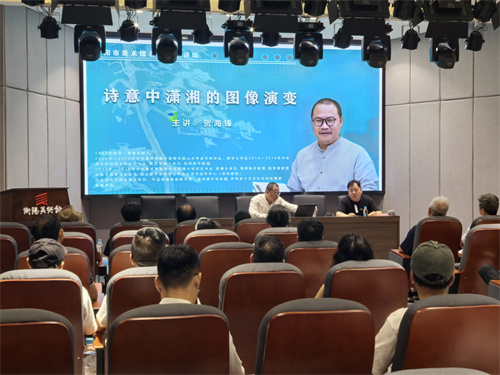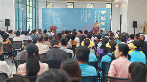 中國新報訊(記者 符秋祖)7月5日上午,由中共衡陽市委宣傳部、衡陽市文旅廣體局主辦,楊衛(wèi)、鄒宏偉策展,藝術(shù)顧問陳湘波,學(xué)術(shù)支持張方白、陽先順,“雁回瀟湘——賀海鋒山水畫作品展”在衡陽市美術(shù)館開展,省內(nèi)外數(shù)百名文學(xué)藝術(shù)家和書畫收藏家、書畫愛好者參與其盛。當(dāng)天下午,賀海鋒在該館名家學(xué)術(shù)講壇做了一場《詩意中瀟湘的圖像演變》講座。