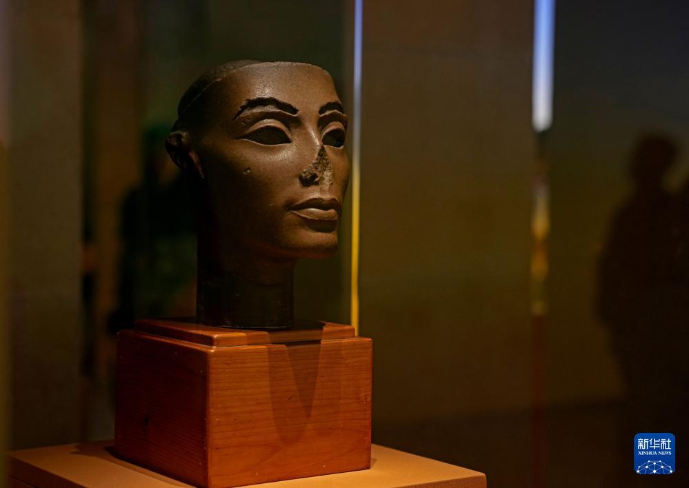 7月17日在“圖坦卡蒙的時代”展區(qū)拍攝的納芙蒂蒂頭像。