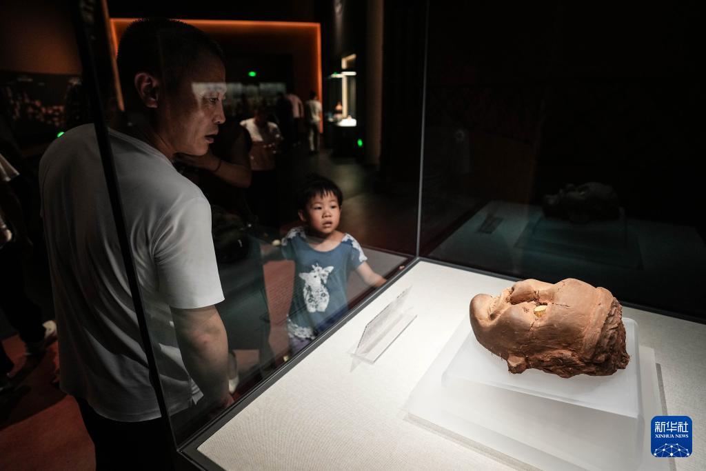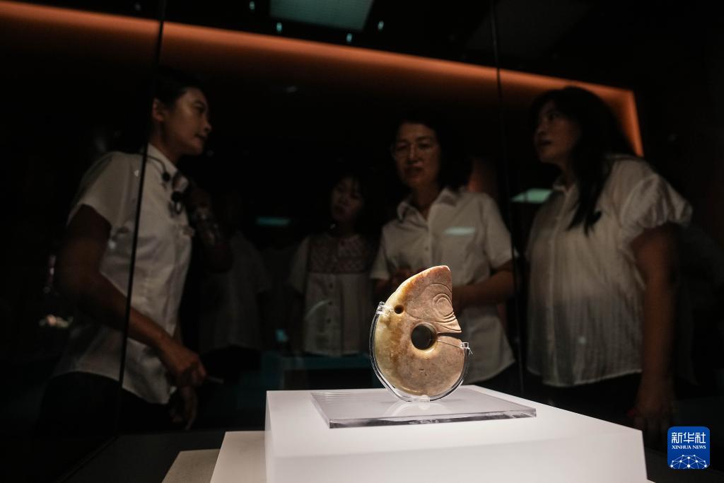 8月3日,參觀者在牛河梁遺址博物館內(nèi)觀展。