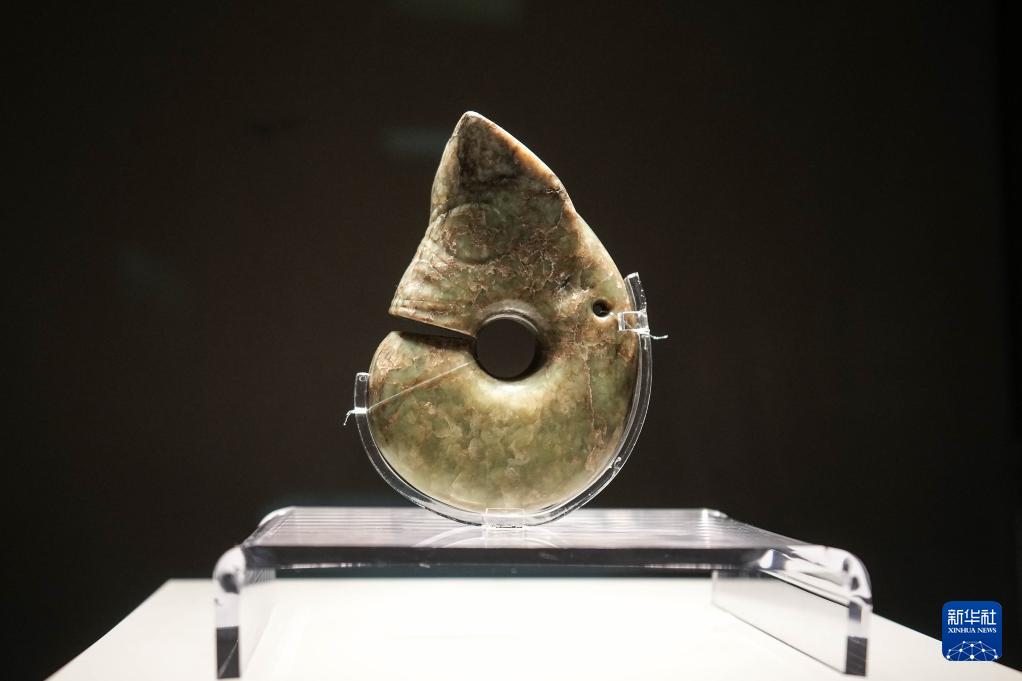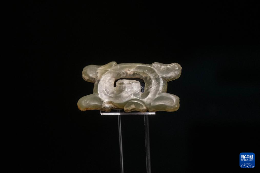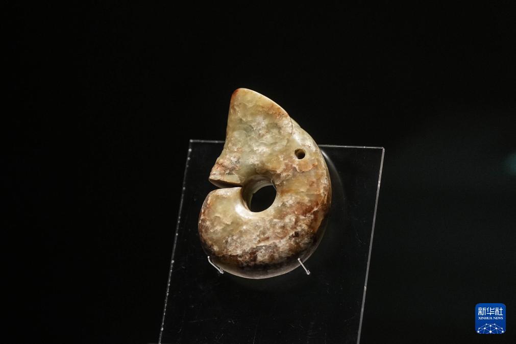 這是8月3日在牛河梁遺址博物館拍攝的展品勾云形玉器。