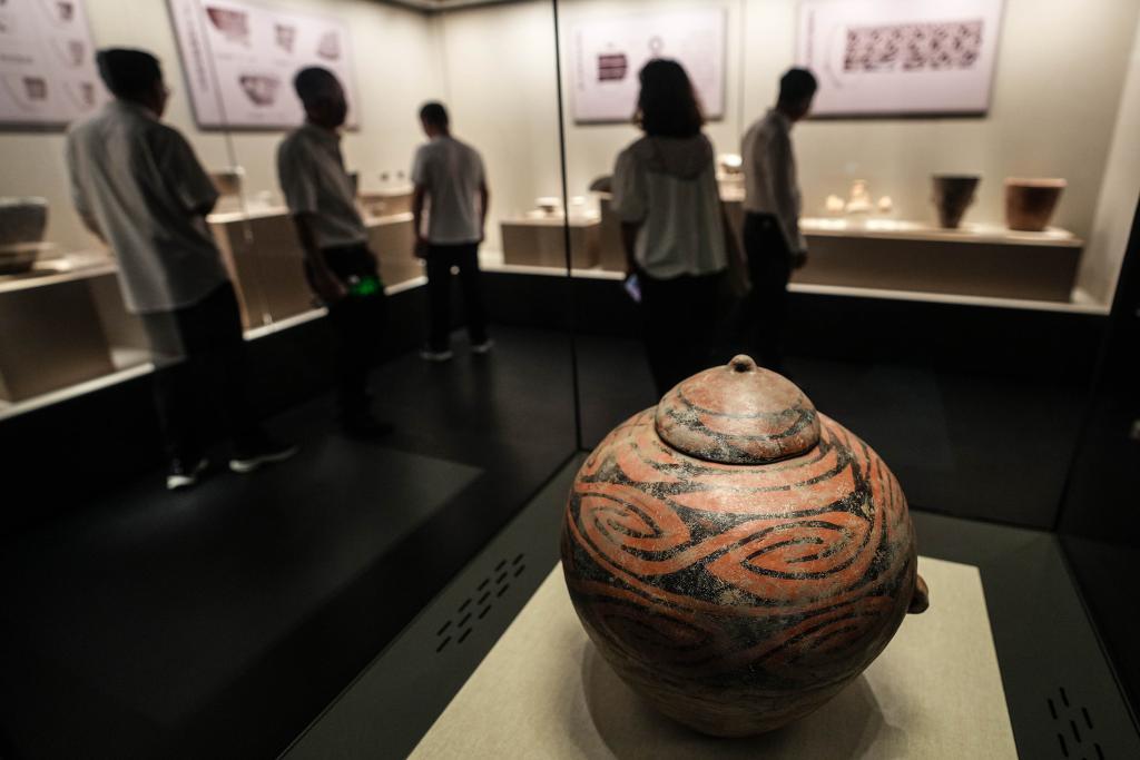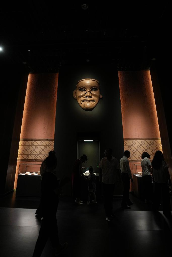 2024年8月3日,參觀者在牛河梁遺址博物館內(nèi)觀展。