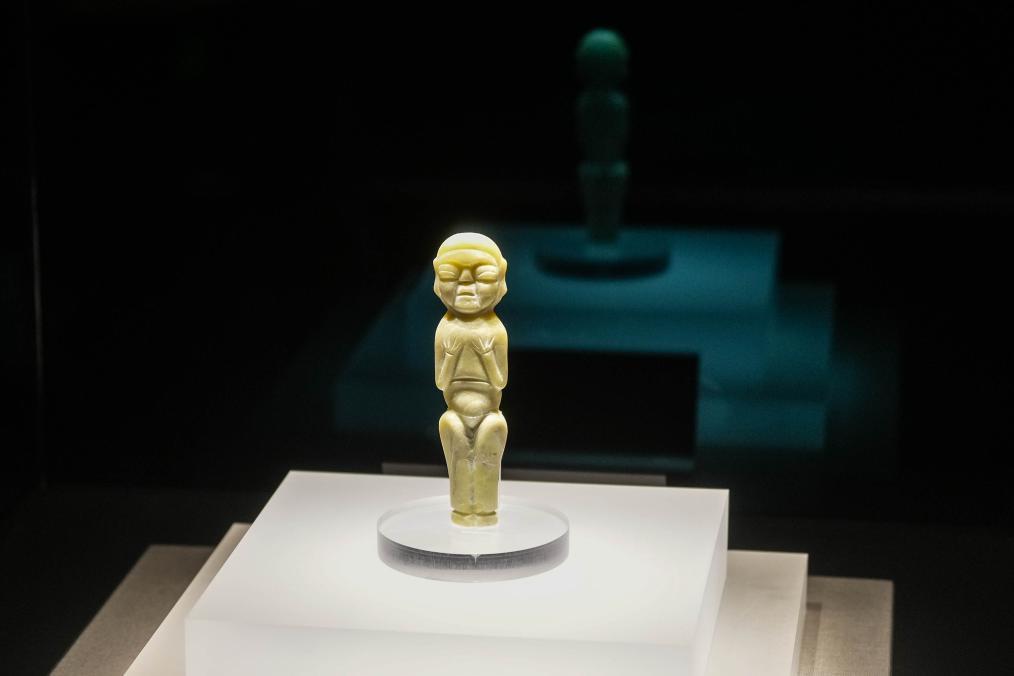 這是2024年8月3日在牛河梁遺址博物館拍攝的展品玉人。