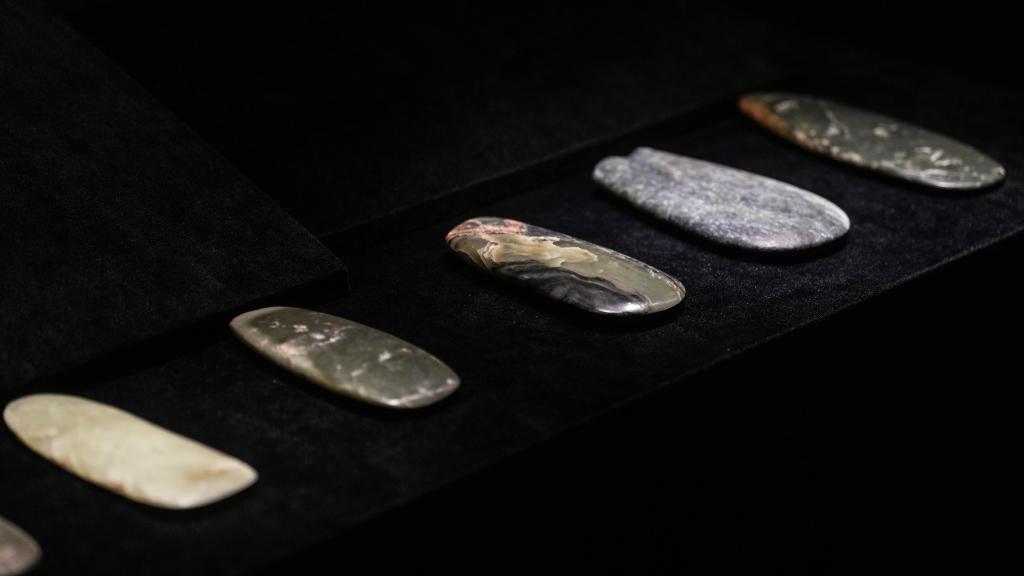 2024年8月3日在牛河梁遺址博物館拍攝的展品玉斧。