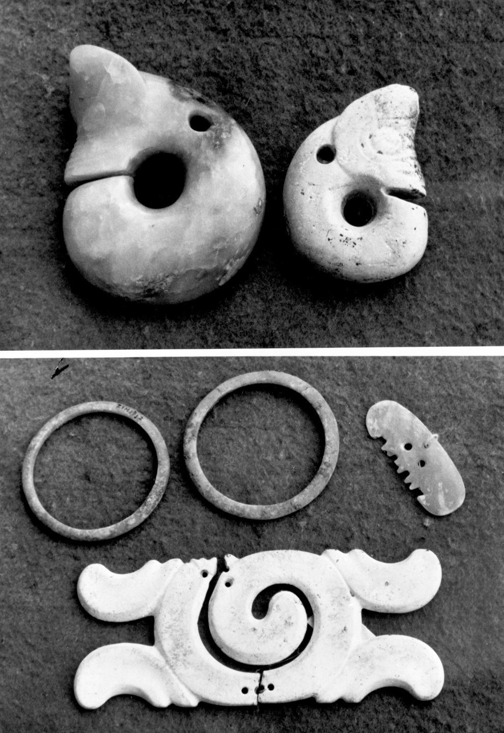 牛河梁遺址出土的部分造型精湛的玉器。