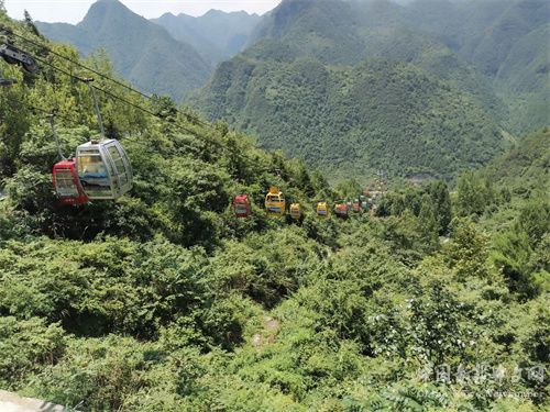 據(jù)該景區(qū)工作人員介紹,由于萬佛洞是高山溶洞,為了方便接送游客,觀光索道成為景區(qū)的一大亮點。直線全長 665.7米,高差243米,單向運送能力每小時可運送400多名游客,全程穿行在林海蒼茫、流云煙嵐之中,游客僅需十五分鐘即可抵達(dá)萬佛洞景區(qū)大門。