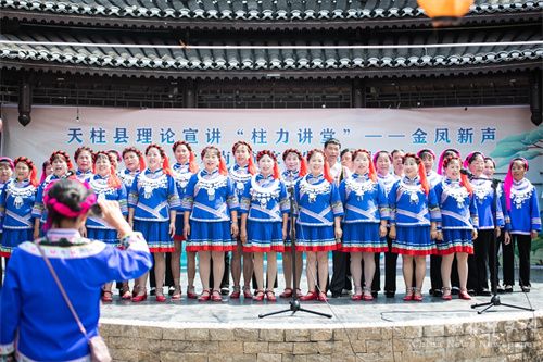 2023年,天柱縣探索打造了“柱力講堂”理論宣講品牌。今年,天柱縣委宣傳部始終堅持本土化原則,以“世界上最長的歌會”——“四十八寨歌節(jié)”為特色,積極引導(dǎo)本土少數(shù)民族同胞通過改編和創(chuàng)作山歌的形式,巧妙地將國家級非物質(zhì)文化遺產(chǎn)“四十八寨歌節(jié)”與“柱力講堂”理論宣講品牌相結(jié)合,形成了獨(dú)具特色的理論宣講“金鳳新聲”子品牌。“金鳳新聲”將理論宣講巧妙融入傳統(tǒng)文化,形成“理論宣講+山歌傳唱+新媒體傳播+大眾化普及”的形式,以群眾喜聞樂見的形式展現(xiàn)宣傳內(nèi)容,在傳承中賦予傳統(tǒng)文化新的內(nèi)涵,也讓理論宣講更加接地氣、入人心。
