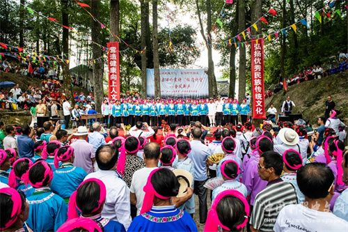 8月10日,在天柱縣坌處鎮(zhèn)三門塘歌場,來自湘黔邊界的60支山歌隊(duì)伍,借助四十八寨歌節(jié)開展“金鳳新聲”理論宣講,活動現(xiàn)場人頭攢動,熱鬧非凡,各地游客紛至沓來,一同感受四十八寨歌節(jié)的獨(dú)特魅力。