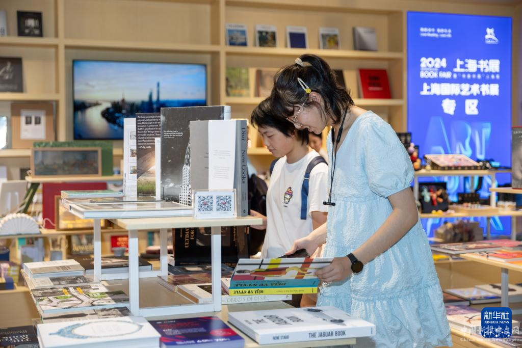 8月14日,人們?cè)谏虾?guó)際藝術(shù)書展專區(qū)翻閱書籍。