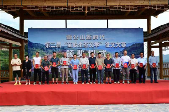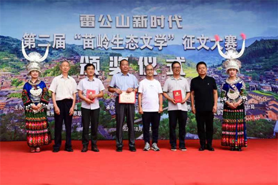 8月15日,由貴州省黔東南州文聯(lián)、州生態(tài)環(huán)境局主辦的黔東南第二屆“苗嶺生態(tài)文學(xué)”征文大賽頒獎儀式在雷山縣白巖村順利舉行。省作協(xié)、州、縣各有關(guān)單位領(lǐng)導(dǎo)與獲獎作者40余人歡聚一堂,分享征文大賽成果,表彰征文優(yōu)勝者。