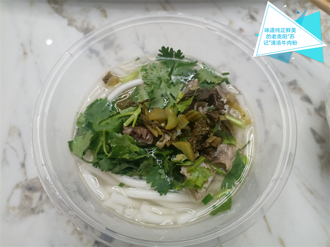 老貴陽“蘇記”清湯牛肉粉,味道純正,牛肉本味十足,湯色完美,制作人為貴陽民間手藝人蘇賢,她是一位美食愛好者,潛心研究美食多年,對牛肉粉有自己一套獨特的理解。