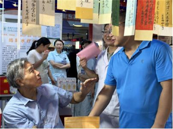 活動現(xiàn)場人頭攢動,各個科室的義診臺都吸引了眾多市民病友參與。其中,肛腸科義診臺尤為獨特,懸掛了一系列由一位神秘嘉賓為該科醫(yī)生、護士出的人名和病名謎。這些謎語先將醫(yī)師護士的名字懸掛在外,讓市民病友猜射,猜對還能摸獎,這種別出心裁的方式與其他科室不同,成功吸引了不少人參與,現(xiàn)場氣氛十分熱烈。觀眾們紛紛圍攏在肛腸科義診臺前,全神貫注地思考著謎語。一位市民興奮地說:“這種形式太新穎了,既讓我們了解了醫(yī)生護士,又增加了對中醫(yī)藥知識的認識,真是一舉兩得。”還有人表示:“沒想到來參加義診活動還能這么有趣,感覺對中醫(yī)藥文化更感興趣了。”